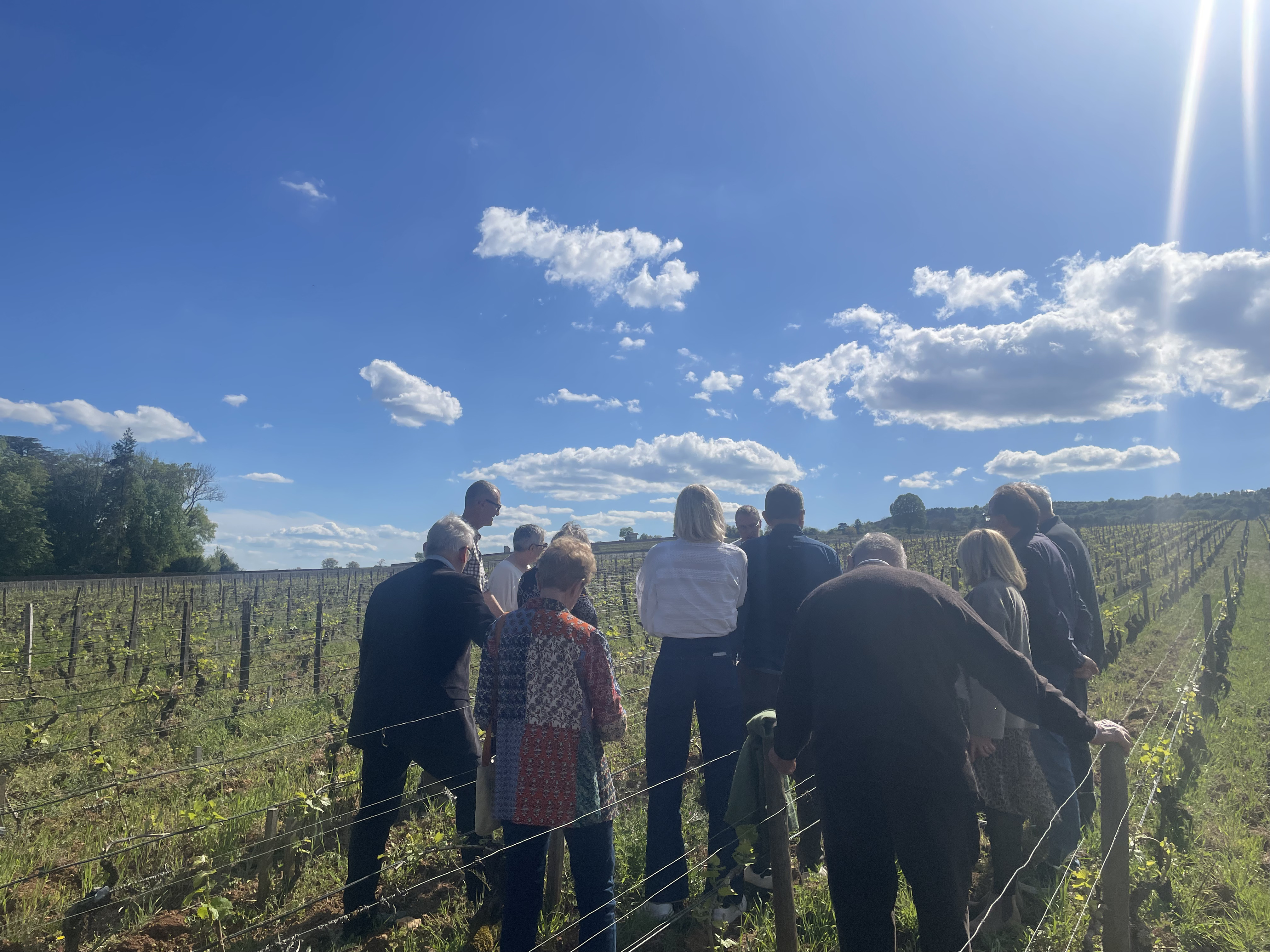 Pour clore cette journée ensoleillée, les associés se sont rendus directement au cœur de la parcelle de Meursault "Meix Chavaux". Sur place, ils ont pu observer de près le dispositif des fils chauffants et poser leurs questions sur l'entretien de la vigne. L'occasion également d'évoquer le travail d'orfèvre du Domaine indispensable pour garantir la concentration et la qualité optimale des futurs raisins.